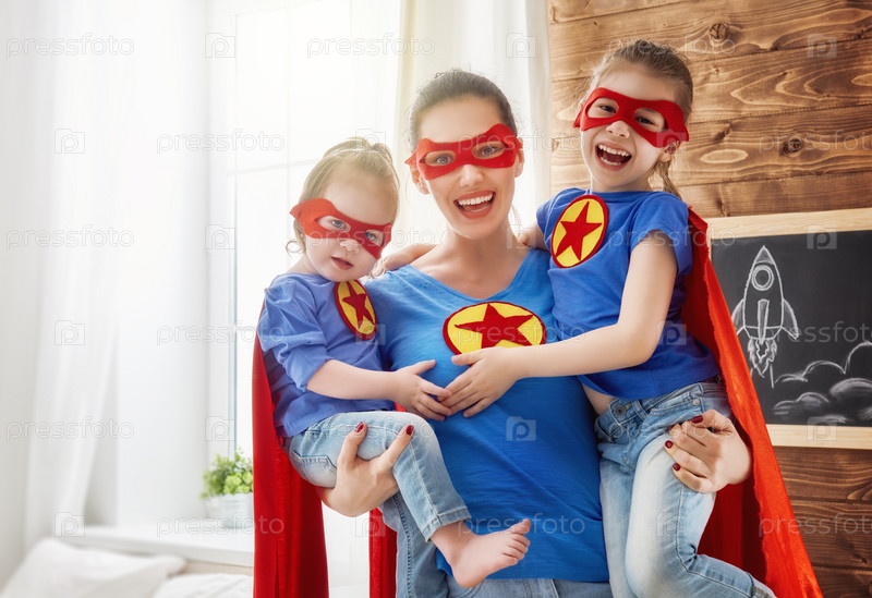 Дочки и мама в костюмах супергероев