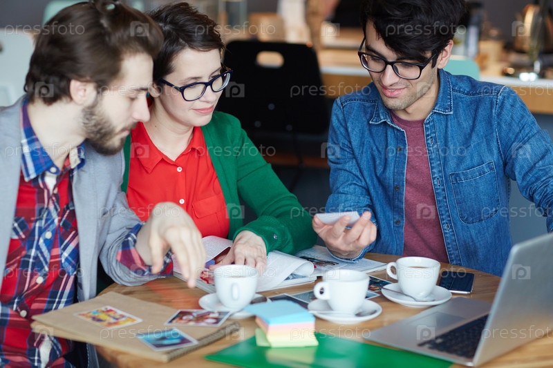 Совещание молодых людей в кафе