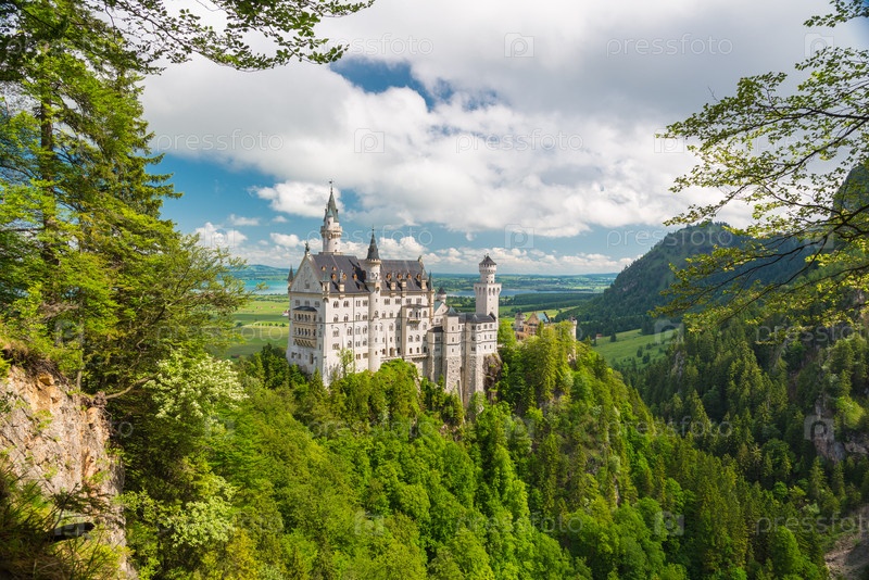 Живописный природный ландшафт с замком Нойшванштайн. Германия