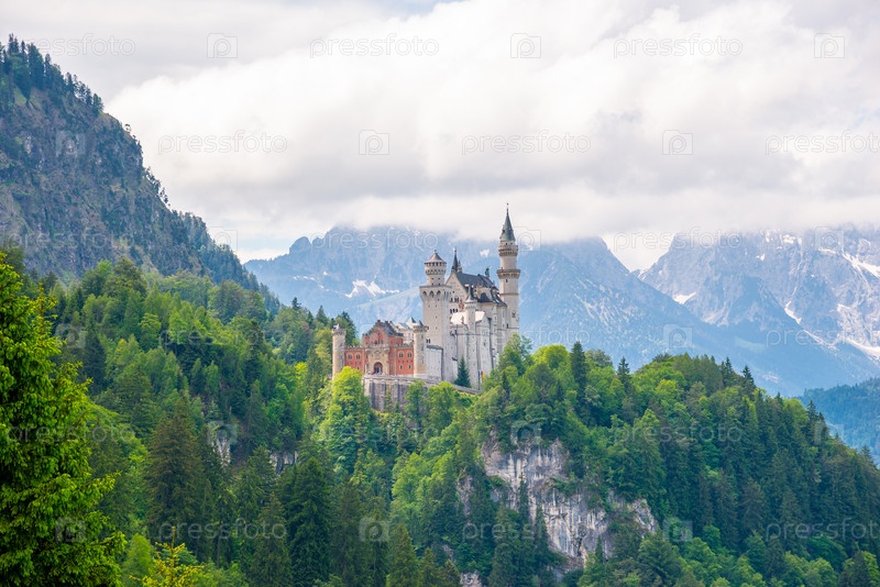 Оригинальный вид всемирно известного замка Нойшванштайн, Германия