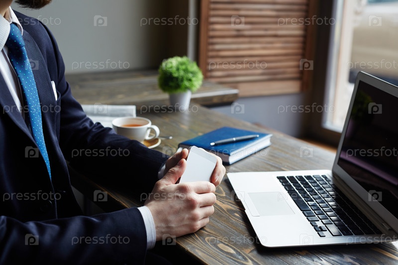 Бизнесмен, работающий в кафе во время перерыва