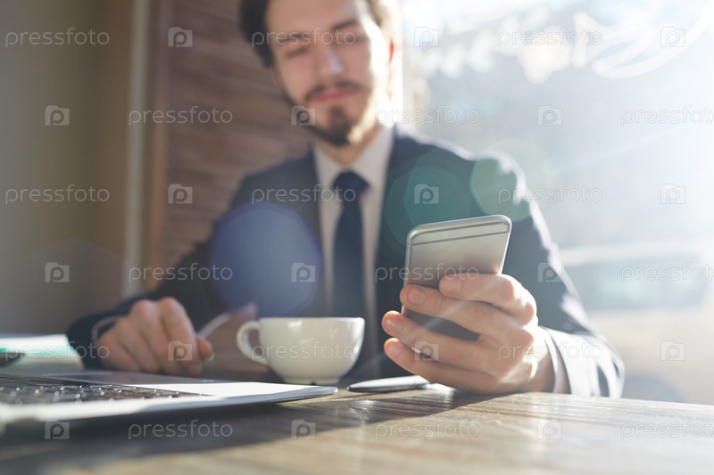Успешный бизнесмен, использующий смартфон