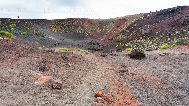 Люди в старом кратере на горе Этна на Сицилии