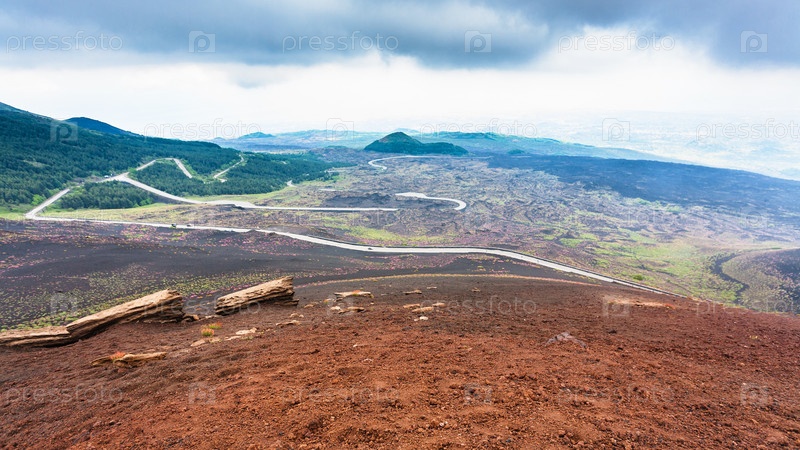 Дорога в застывших лавовых полях на горе Этна