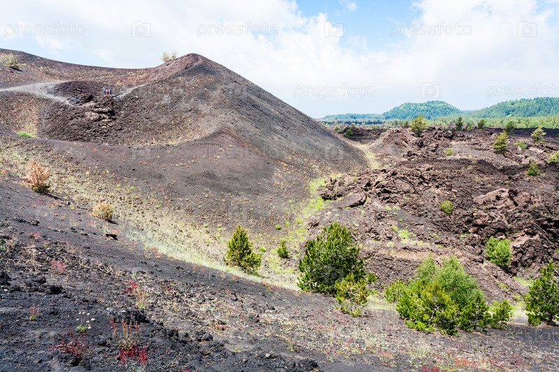 Вулканический пейзаж со старыми кратерами вулкана Этна