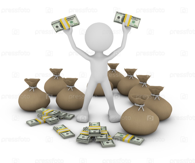 Человек с пачками долларов