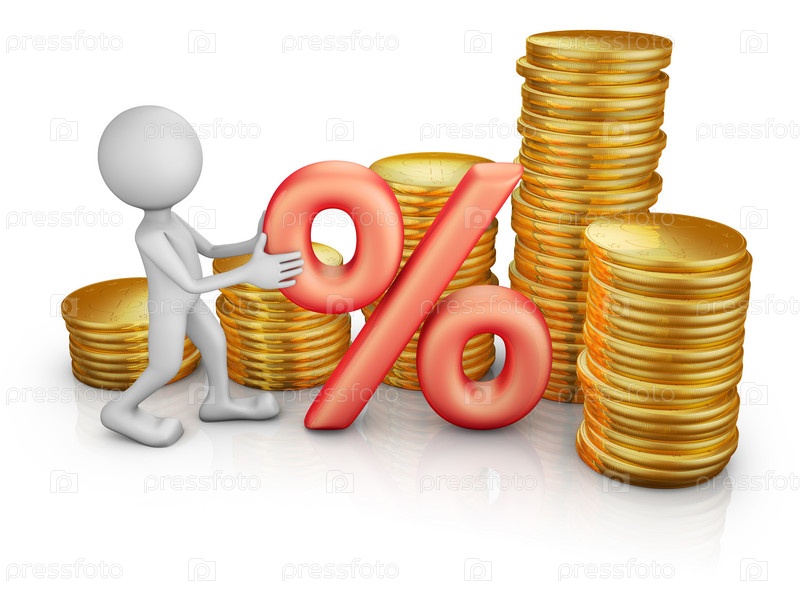 Человек с процентами и монетами