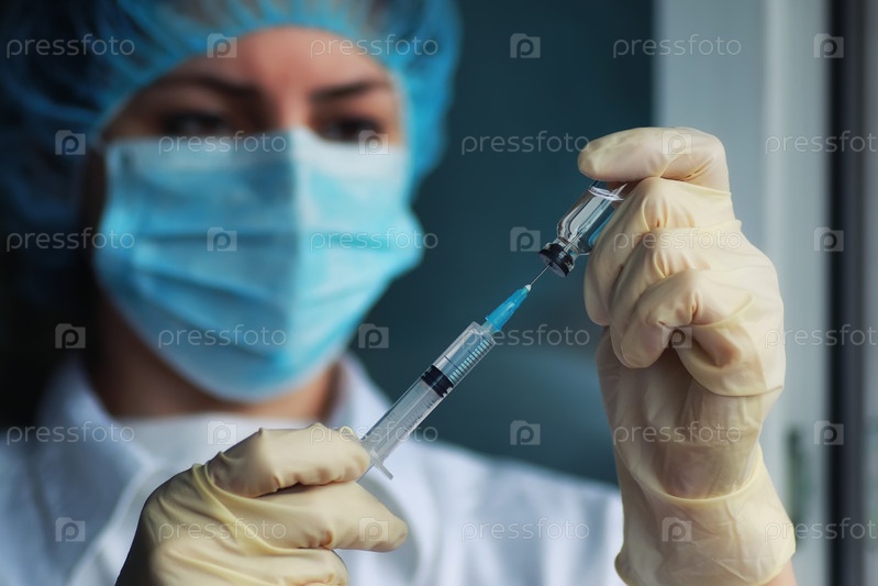 Медсестра держит шприц и ампулу