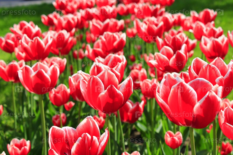 Красные тюльпаны на клумбе