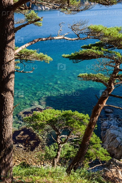 Сосны на скалах у моря в утреннем свете