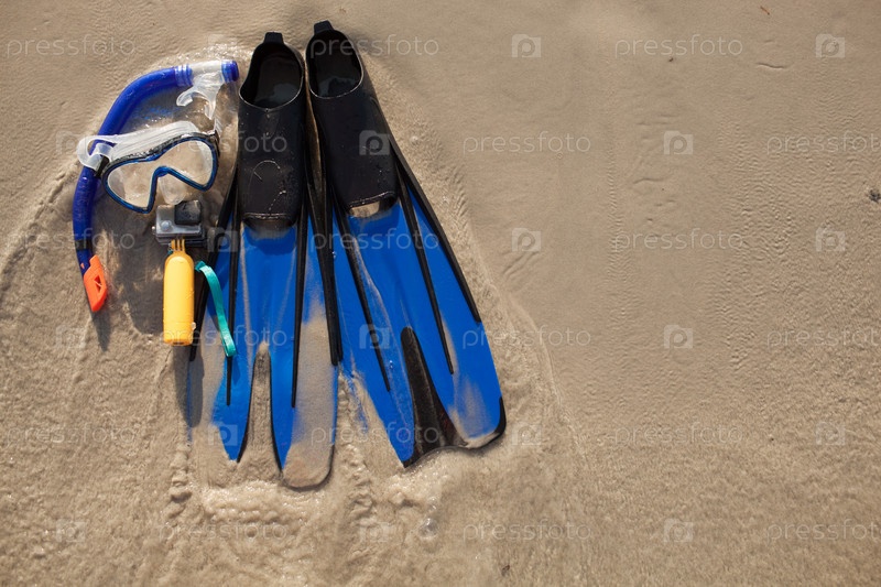 Маска и ласты на песке