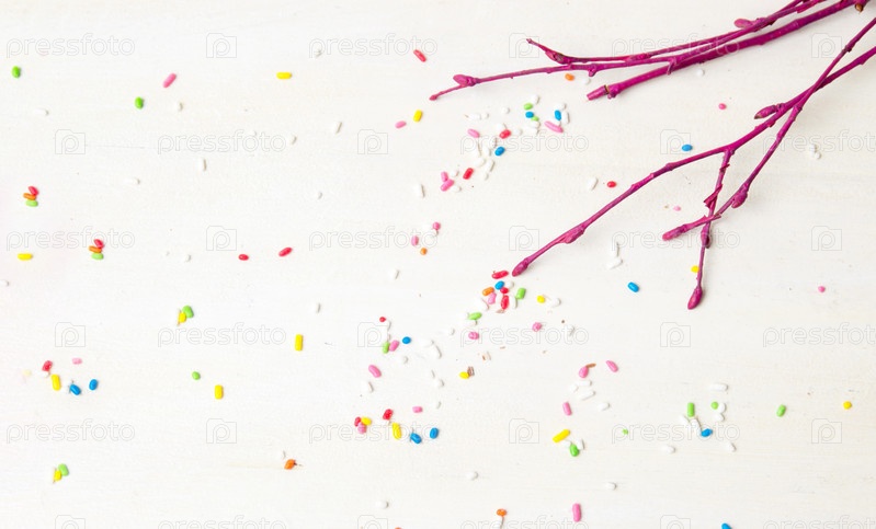 Ветка дерева с красочными конфетти