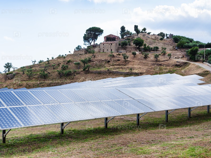 Солнечные батареи возле деревни на Сицилии