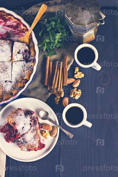 Вишневый пирог и чашка кофе