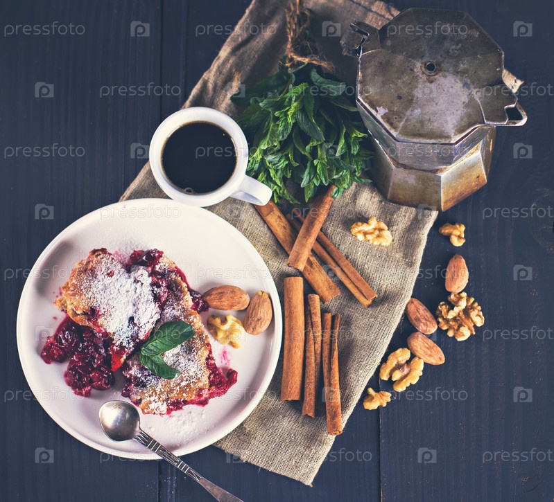 Вишневый пирог и чашка кофе