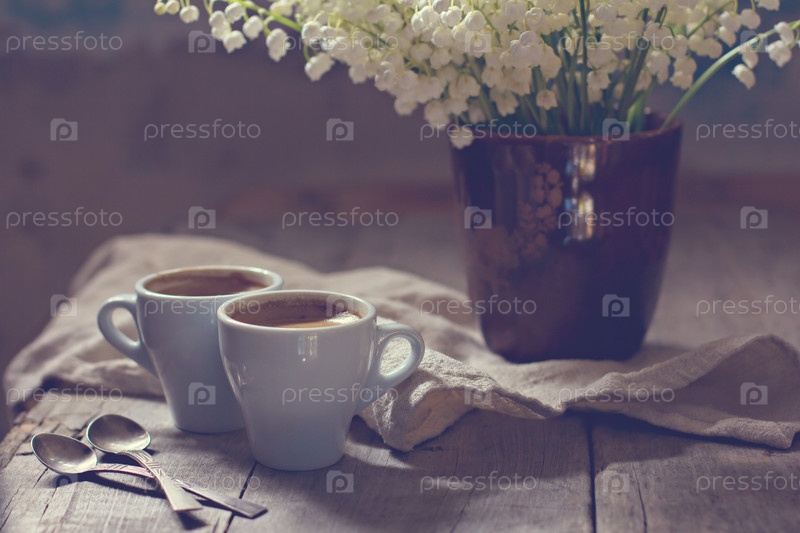 Чашки эспрессо и ландыши