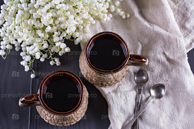 Чашки эспрессо и ландыши