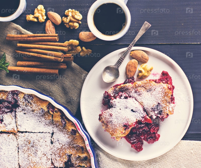 Вишневый пирог и чашка кофе