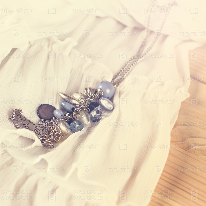 Красивый голубой кулон на белой ткани