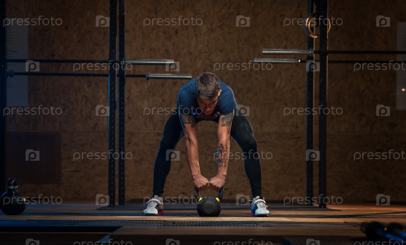 Спортсмен делает упражнения с гирей