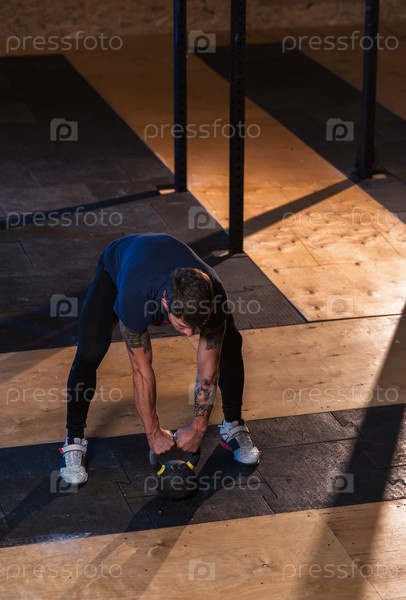 Тренировка с гирей в тренажерном зале