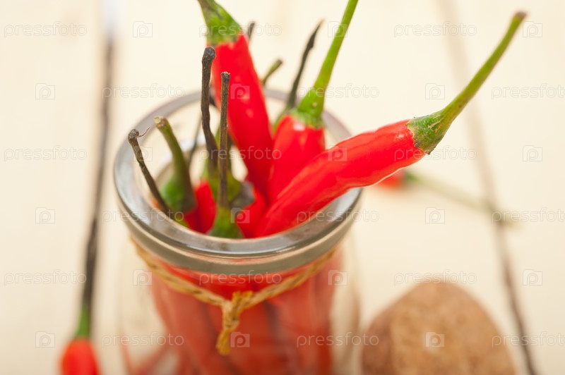 Красный перец чили в стеклянной банке