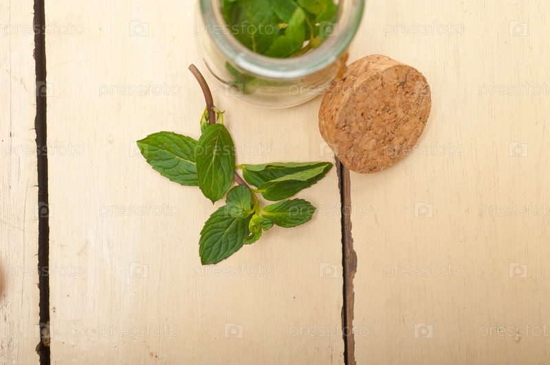 Свежие листья мяты в стеклянной банке