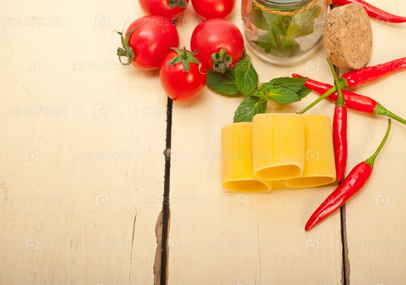 Итальянские макароны паккери с томатами, мятой и перцем чили