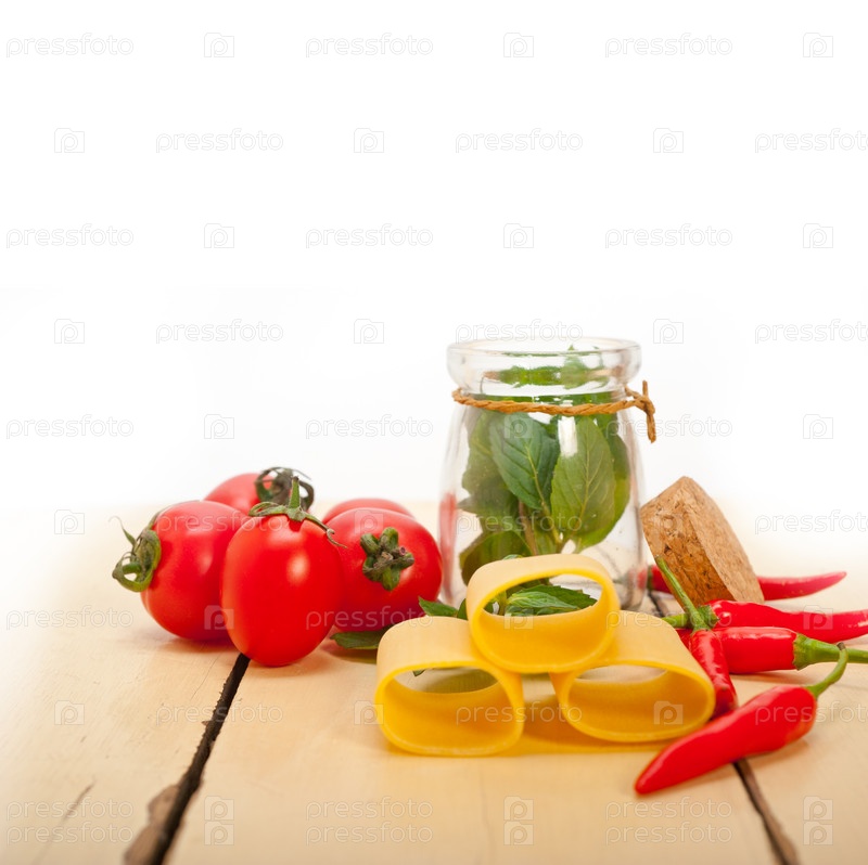 Итальянские макароны паккери с томатами, мятой и перцем чили