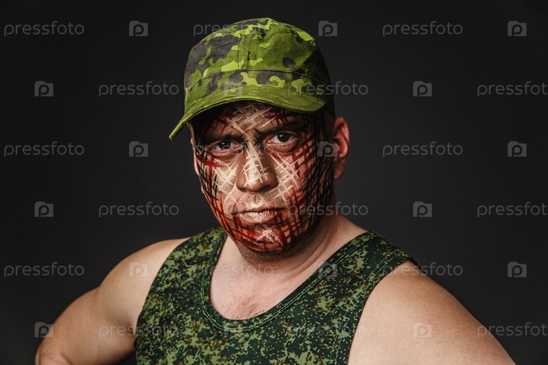 Военный камуфляж на лице солдата