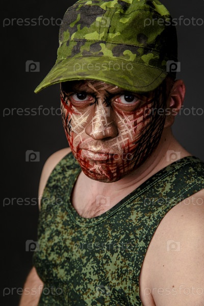 Военный камуфляж на лице солдата