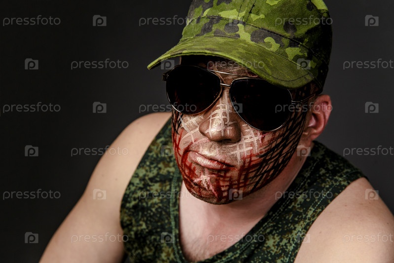 Военный кмуфляж на лице солдата
