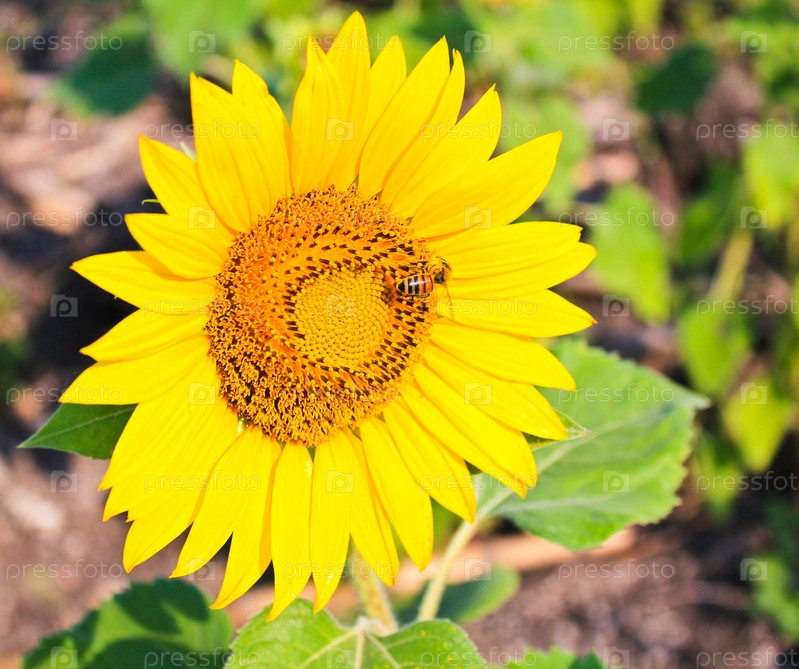 Яркий желтый подсолнух с пчелой
