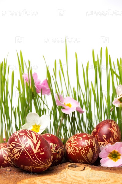 Окрашенные пасхальные яйца и пшеница