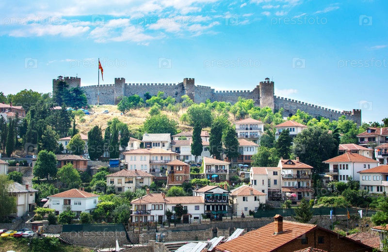 Стены крепости Сэмюэл над домами старого города Охрид