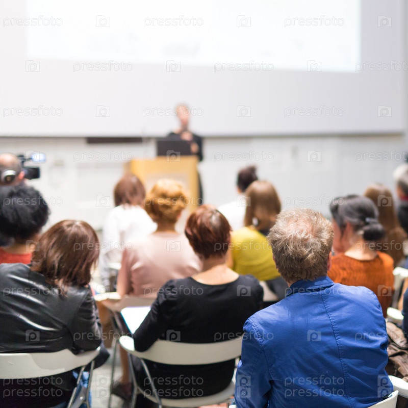 Женщина делает презентацию в лекционном зале