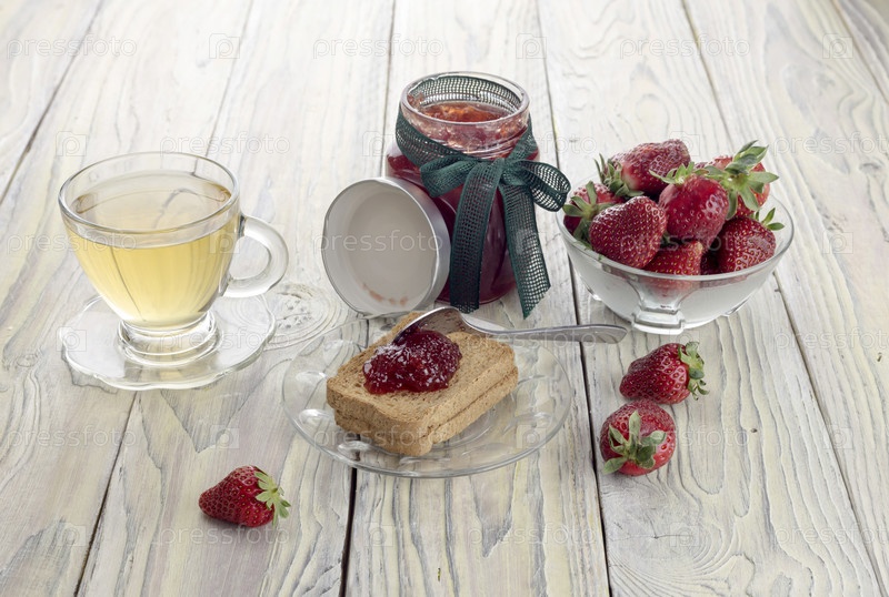 Клубничный джем, сухари и чай