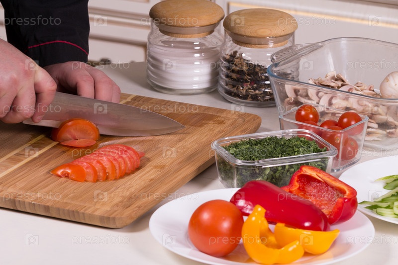 Шеф-повар режет помидоры