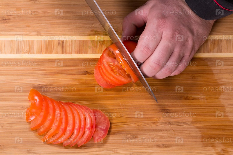 Шеф-повар режет помидоры