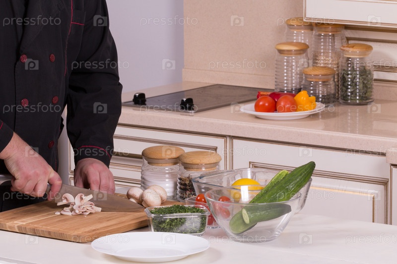 Шеф-повар назрезает грибы