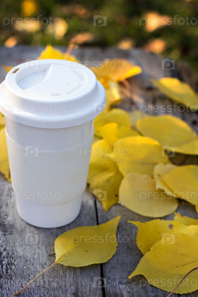 Чашка кофе и желтые осенние листья