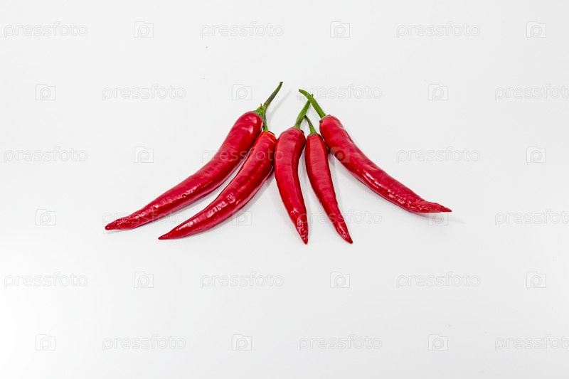 5 перцев чили на белом фоне