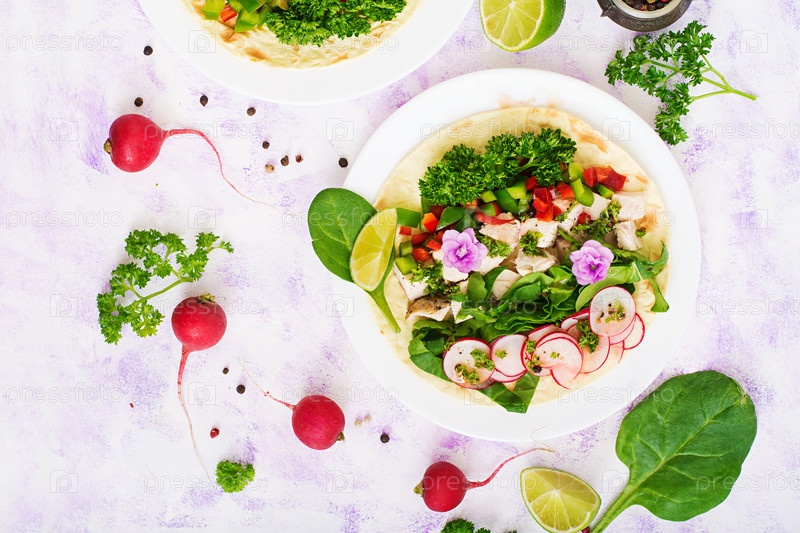 Мексиканские кукурузные тако с отварной куриной грудкой