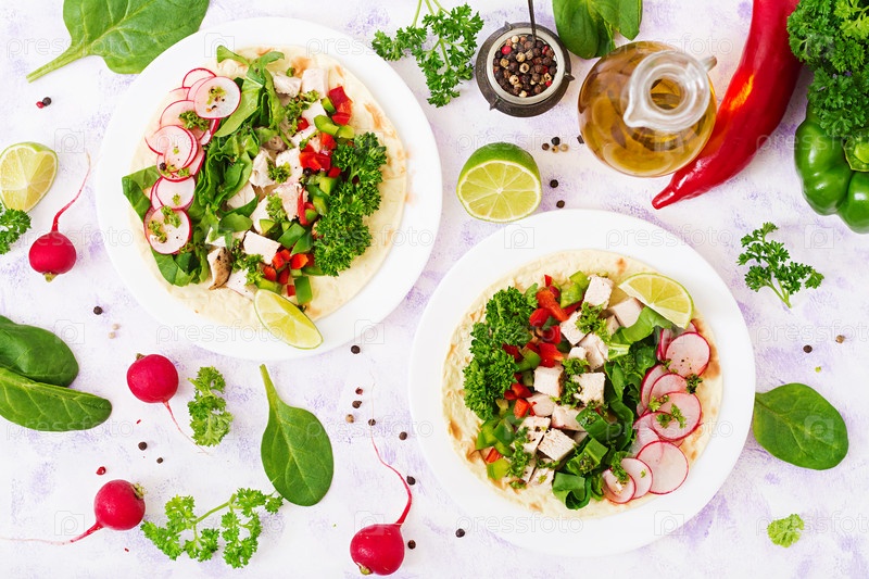 Мексиканские кукурузные тако с отварной куриной грудкой
