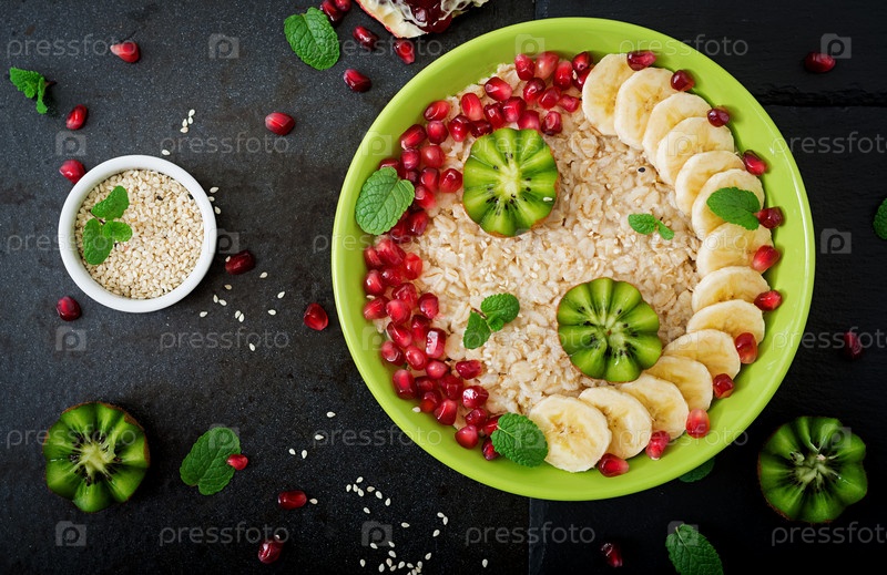 Вкусная и полезная овсяная каша с фруктами, ягодами и льняными семенами