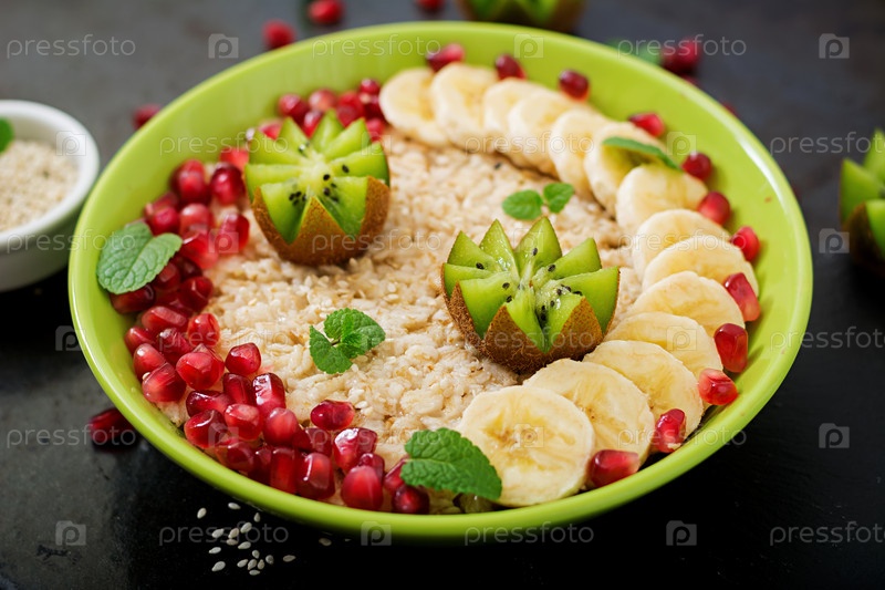 Вкусная и полезная овсяная каша с фруктами, ягодами и льняными семенами