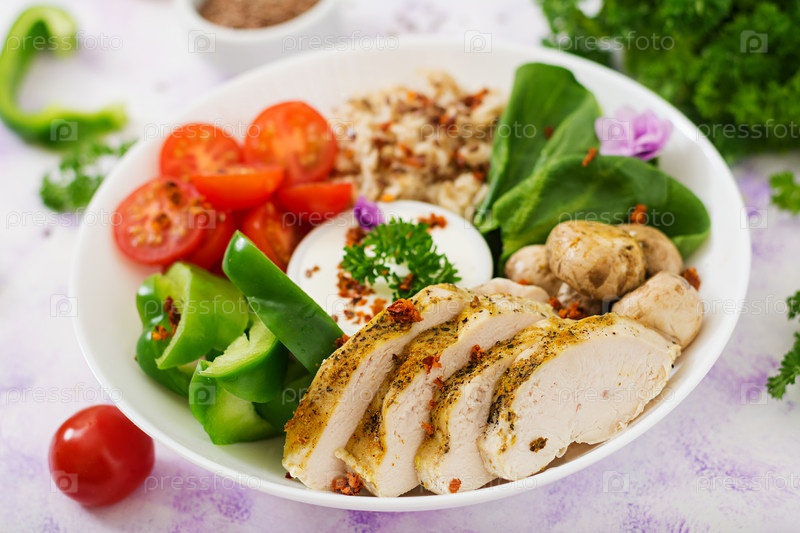 Овсяная каша, куриное филе и свежие овощи