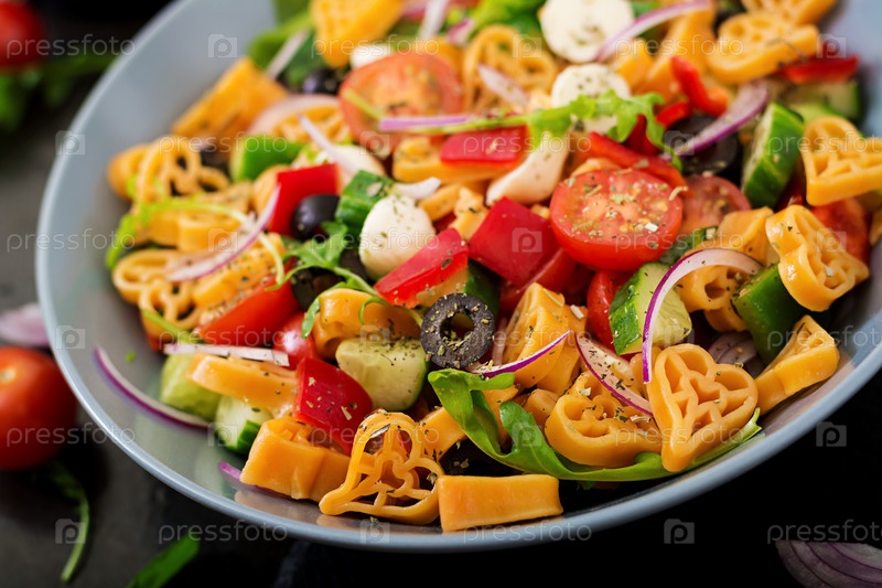 Паста в форме сердца с овощами
