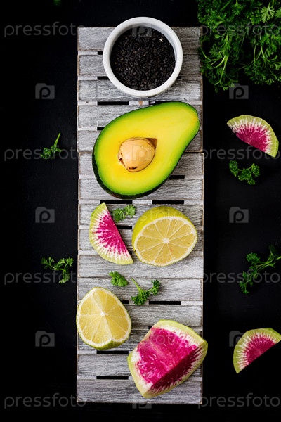 Авокадо, лайм и арбузная редька
