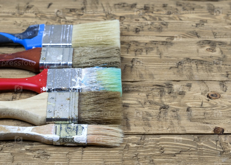 Пять разноцветных кистей на деревянном столе